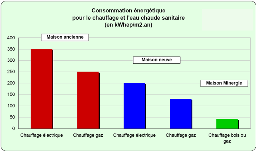 - la consommation du bâtiment pour le chauffage et l’eau chaude sanitaire (ECS),